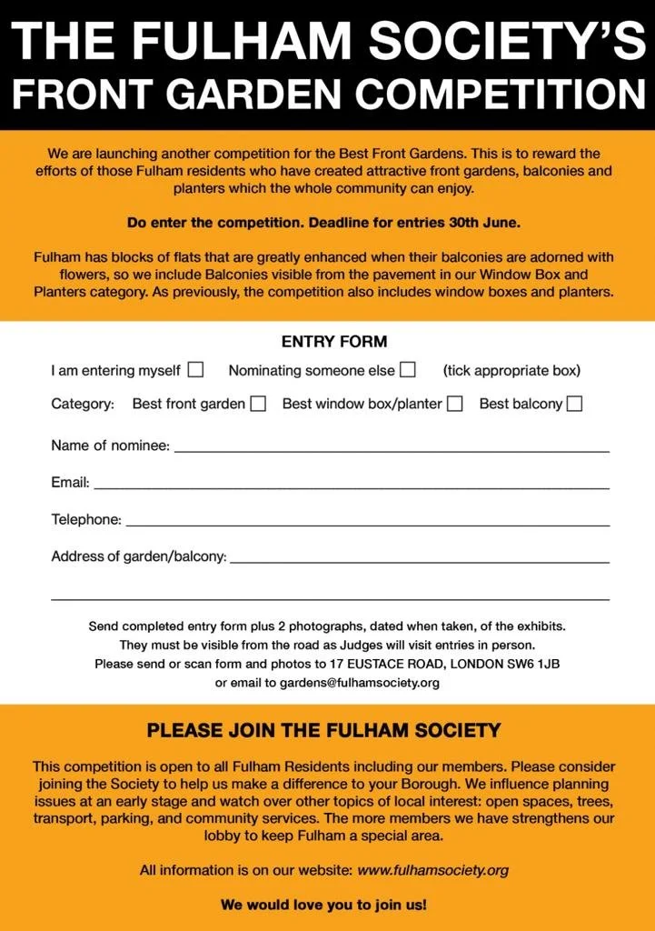 Call for entries! Fulham’s Finest Front Gardens, June 2022.